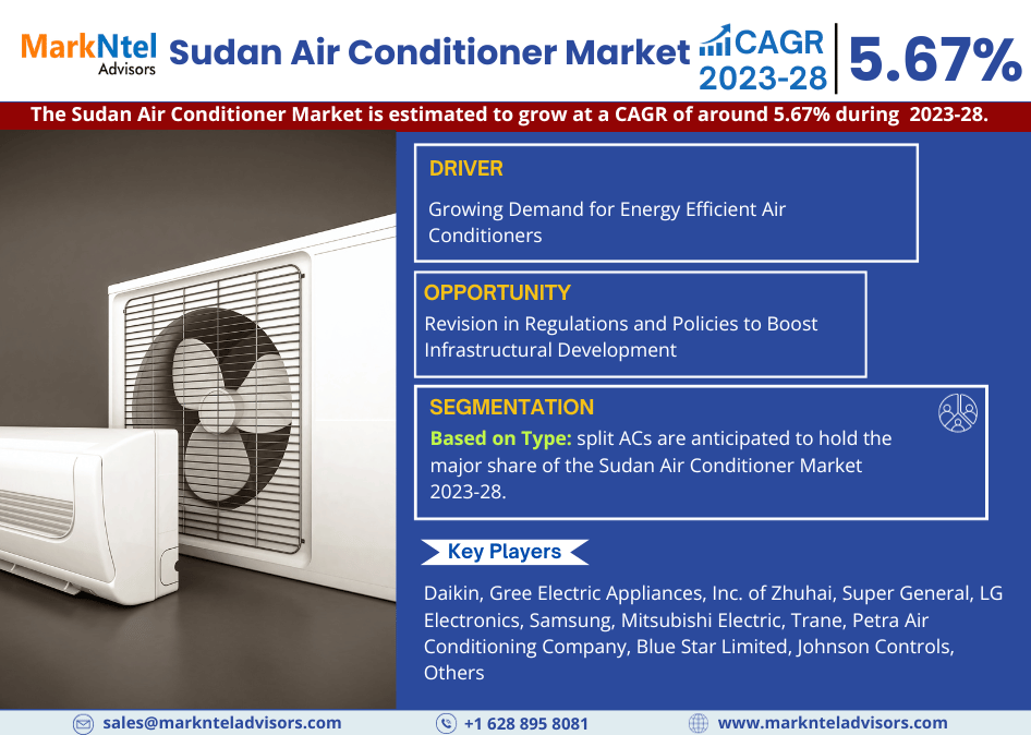 Markntel Advisors’ most recent report unveils a striking forecast for the Sudan Air Conditioner Market, projecting an astonishing Compound Annual Growth Rate (CAGR) of roughly 5.67% over the period of 2023-28. The extensive study, conducted by a renowned market research entity, unravels invaluable insights into the market dynamics. It delves deep into the competitive landscape, dissecting crucial elements including product pricing, financial outlays, revenue streams, manufacturing, capacity utilization, supply-demand intricacies, and the velocity of industry expansion.