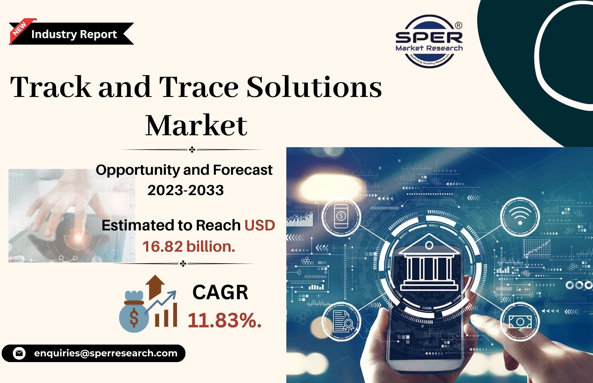According to SPER market research, ‘Track and Trace Solutions Market Size- By Product, By Technology, By Application, By End-User- Regional Outlook, Competitive Strategies and Segment Forecast to 2033’ state that the Global Track and Trace Solutions Market is predicted to reach USD 16.82 billion by 2033 with a CAGR of 11.83%