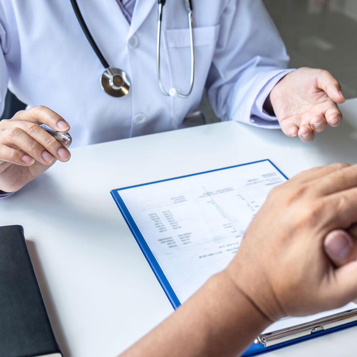 The doctor will start by thoroughly reviewing your medical history, including your symptoms, diagnoses, medications, and any prior treatments. This helps inform their recommendations.