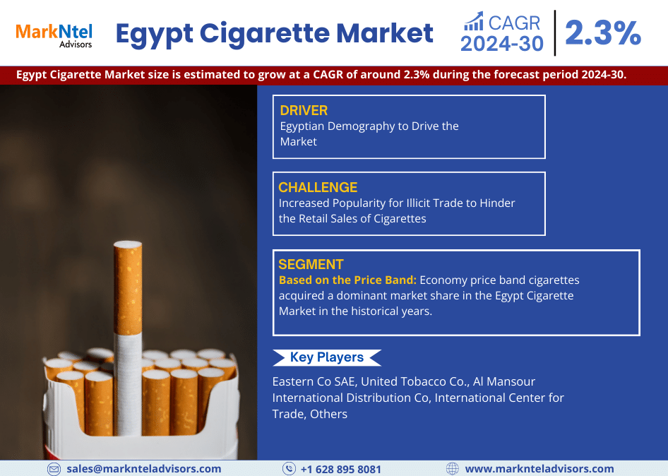 The most recent report from MarkNtel Advisors delves into the Egypt Cigarette Market, examining its market size, share, growth rate, and current trends, while also considering the factors influencing it in the short and long term. The report aims to assess the market’s potential by analyzing present trends and providing insights into the competitive landscape for both existing industry players and potential new entrants.